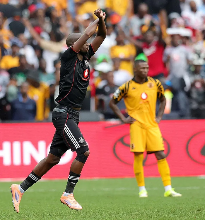 Orlando Pirates striker Evidence Makgopa celebrates his goal in the last Soweto derby against Kaizer Chiefs at Nasrec.