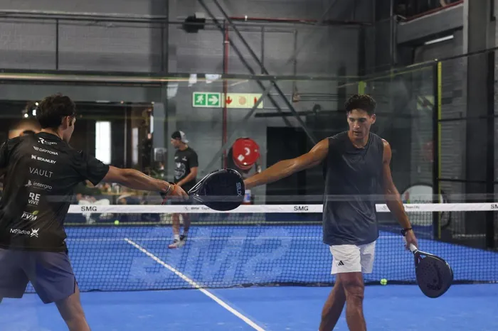 The Velasco brothers in action at this weekend’s Padel4Good event at the Racket + Ball Club in Bree Street, Cape Town. Picture: Pia Maria Tucker
