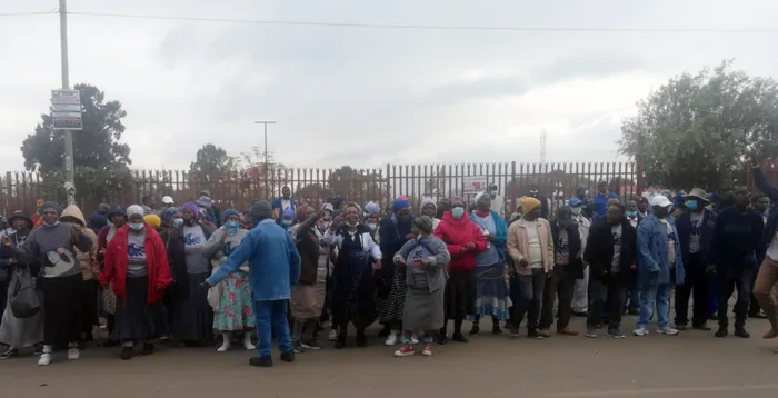 Members protesting outside the Palmridge magistrate court where their leader Michael Sandlana was appearing. Picture: Siyabonga Sithole.